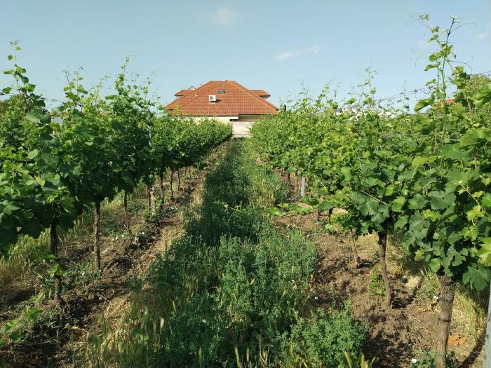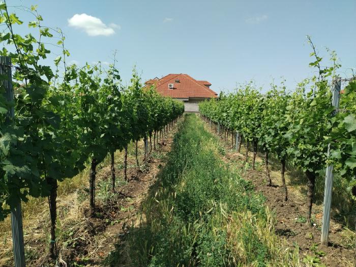 Here comes the threading process. The vine is a climbing plant and grows upwards on the wire by itself. However, it does not care too much about form and in the second picture you can see that it grows in all directions. In order to provide shade, ventilation, but also driving access to the row, we have to thread the vines upright in the wire. This leads to a nice growth and, even more important, a tidy, aerated grape zone in which the grapes have room to develop. The work is laborious and to this day there is no good alternative to manual labor. And so we brave the heat and do this important work. Because good and high quality fruits are definitely worth the effort for us. The result can be seen in the first picture at the top.
